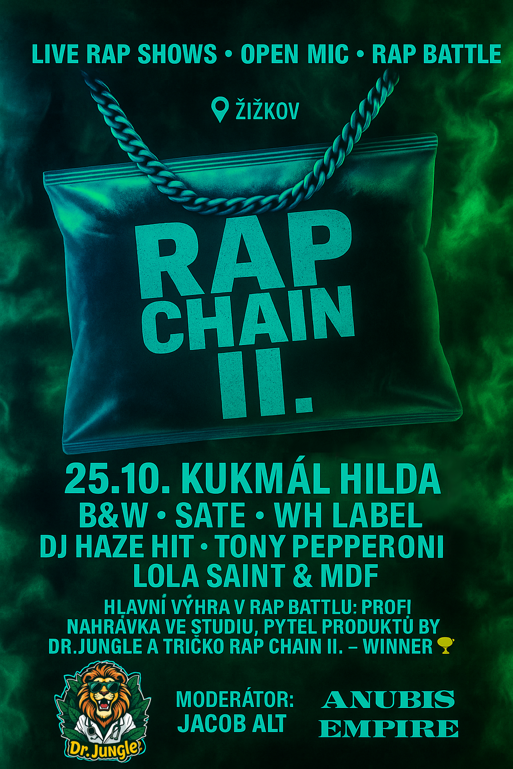 Díky klubu Kukmál Hilda a všem návštěvníkům, jsme nadšení, že jste se bavili a podpořili naší akci, která má za účel propojit lidi a umělce v jeden silnej chain a společně růst, ať už kariérně nebo duševně, tahle akce má všechny lidi podpořit a ne naopak. Diss a battle je součást game, který nás má posílit se vzájmným respektem, proto se nebojte přihlásit do RAP CHAIN III. ! RAP je sport, hra, sebevyjádření, propojení se se sebou samotným, vnitřní silou a hlavně propojení se s okolím, v čemž tkví ta největší společná síla, které říkáme RAP CHAIN⛓❤️